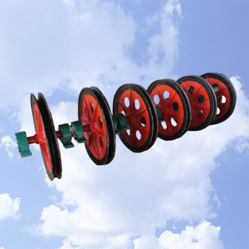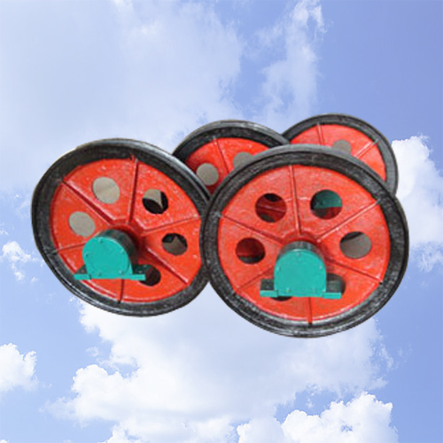 礦用天輪安裝在井架上,作支撐,供礦井提升時(shí)支拖提升機(jī)卷筒到提升容器之間,引導(dǎo)鋼絲繩轉(zhuǎn)向之用。繩槽帶塑襯或膠塊,增加鋼絲繩的使用壽命。