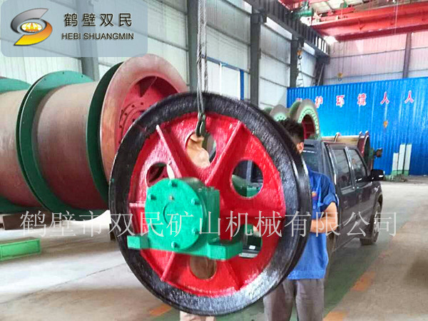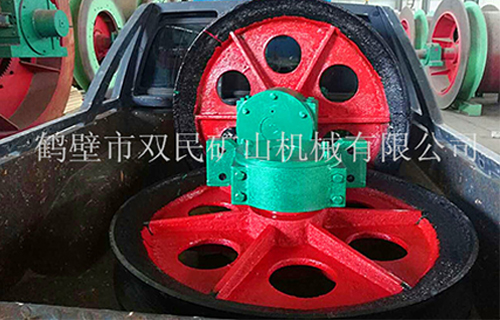 1、雙槽懸吊天輪和單槽懸吊天輪的結(jié)構(gòu)主要有繩輪、固定軸、及軸承座組成。繩輪內(nèi)孔鑲嵌有合金銅套,工作時(shí)繞軸作旋轉(zhuǎn)運(yùn)動(dòng),輪轂上裝有油杯,供軸與銅套之間潤滑用。雙槽天輪有兩個(gè)繩輪,其間裝有調(diào)整圈,可以對(duì)兩輪之間的距離進(jìn)行調(diào)整。