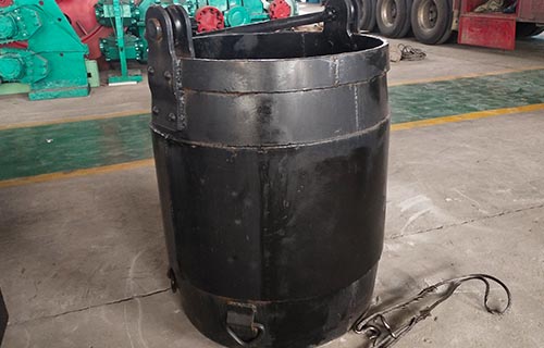 桶體下部四周,有四個(gè)鉤環(huán)。2m3及以下掛鉤式吊桶,鉤環(huán)主要用于掛鉤卸矸時(shí)使用。2m3以上吊桶,由于鉤環(huán)強(qiáng)度限制,只供提升時(shí)穩(wěn)定、移動(dòng)及更換吊桶時(shí)操作之用。吊桶是鑿井期間的主要提升容器,關(guān)系到井下作業(yè)人員的生命,因此應(yīng)由制造廠生產(chǎn),不斷改進(jìn)制造工藝,確保制造質(zhì)量。